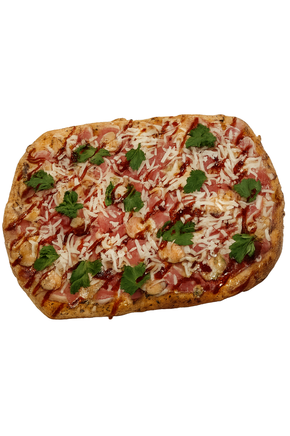 Пицца-соус, моцарелла, прошутто, огурцы маринованные в соусе "Ким-чи", сыр Пармезан, сыр сулугуни, сыр чеддер