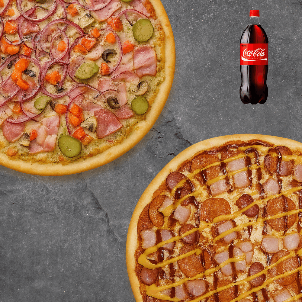 Отличное комбо для всей семьи. Две большие пиццы "Италия" и "Бавария". Кола литр в подарок